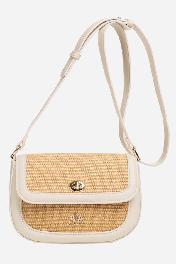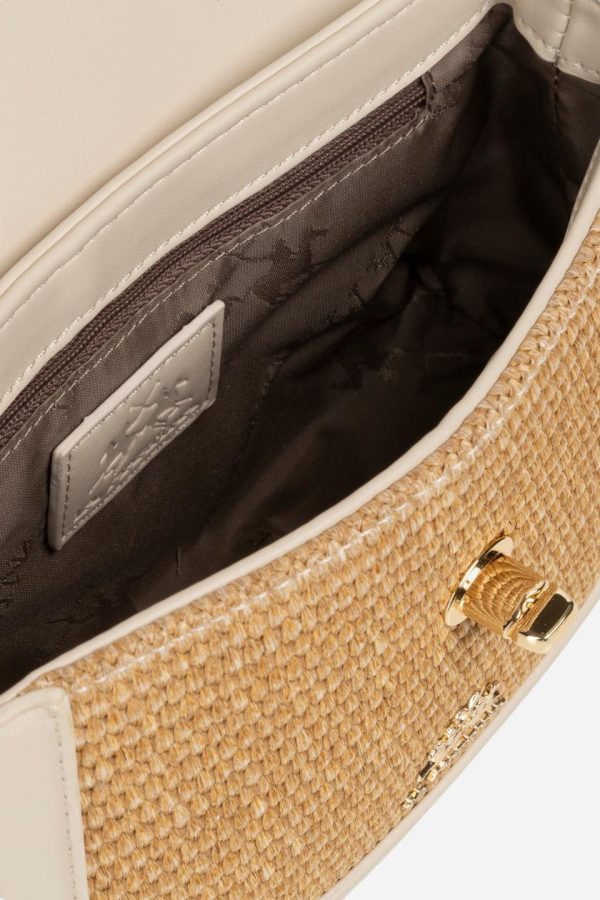 La cartera bandolera Melissa está realizada en una combinación de rafia, poliuretano (PU) y algodón, con un forro interior de poliéster, diseñada para ofrecer ligereza, resistencia y un estilo refinado a la vez que informal. El diseño está decorado con la chapita metálica con el logo institucional de La Martina, aplicado en el frente, un detalle distintivo que expresa la identidad de la marca. Con una práctica hebilla giratoria, la cartera cuenta con un interior bien organizado, con un bolsillo abierto y un bolsillo con cierre metálico, ideal para guardar lo esencial de forma ordenada y segura.