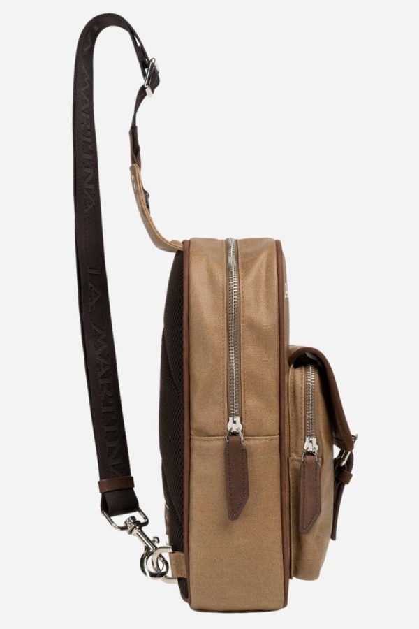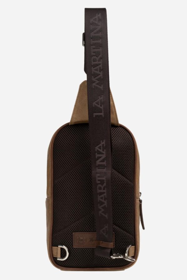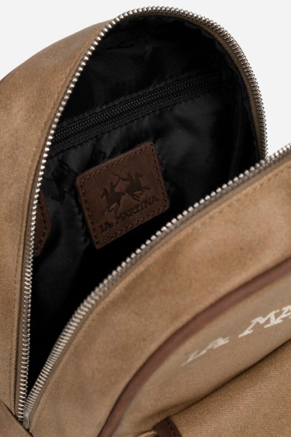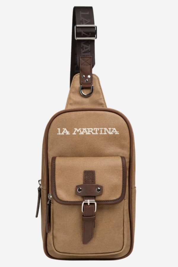 Bodybag da uomo in tinta unita, realizzata in poliuretano con rifiniture in pelle. Chiusura con zip. Presente ulteriore tasca esterna, anch’essa con chiusura zip e fibbia. Tracolla in tessuto regolabile, si cui è presente la scritta La Martina. Profili dell’accessorio in pelle di colore a contrasto. All’interno sono presenti due tasche: una aperta e una con chiusura zip. Il nome del brand è stampato sulla parte frontale. Dimensioni (lunghezza x altezza x larghezza) 17 x 28 x 11 cm.