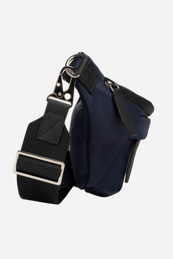 - Cintura in tessuto regolabile e chiusura con moschettone