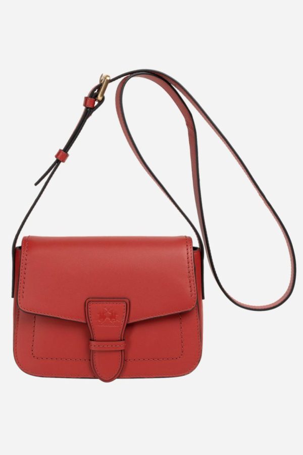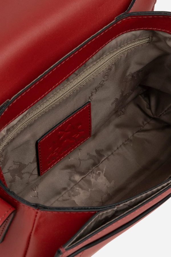 Women’s crossbody bag in a single colour, made from leather. Fastens with magnetic button. Adjustable shoulder strap. Inside the lining is made of polyester. The inside features two pockets: one open pocket and one with a zip. The logo is branded on the front. Dimensions (length x height x width) 20 x 15 x 8 cm.