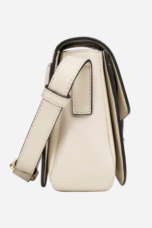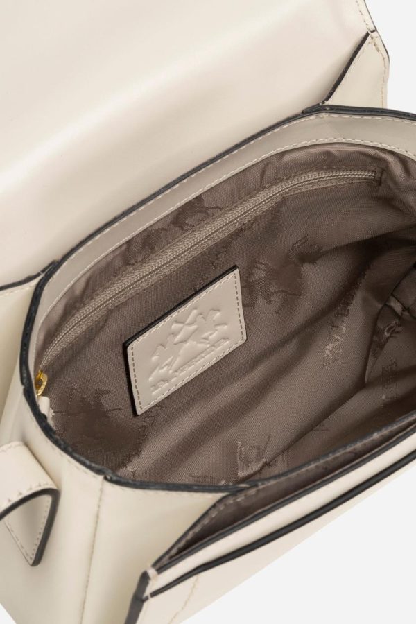Women’s crossbody bag in a single colour, made from leather. Fastens with magnetic button. Adjustable shoulder strap. Inside the lining is made of polyester. The inside features two pockets: one open pocket and one with a zip. The logo is branded on the front. Dimensions (length x height x width) 20 x 15 x 8 cm.