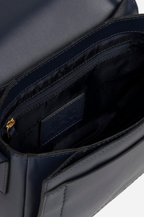 Women’s crossbody bag in a single colour, made from leather. Fastens with magnetic button. Adjustable shoulder strap. Inside the lining is made of polyester. The inside features two pockets: one open pocket and one with a zip. The logo is branded on the front. Dimensions (length x height x width) 20 x 15 x 8 cm.