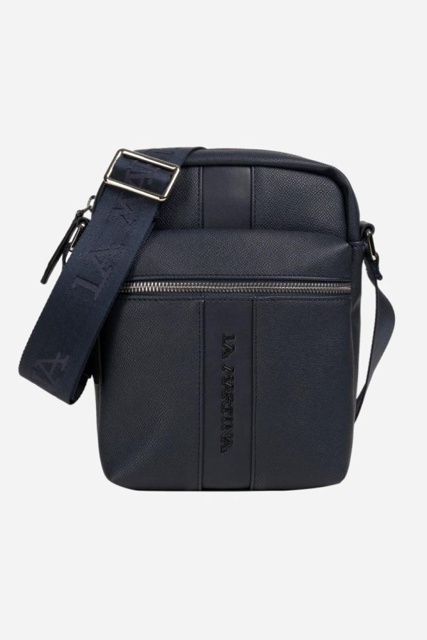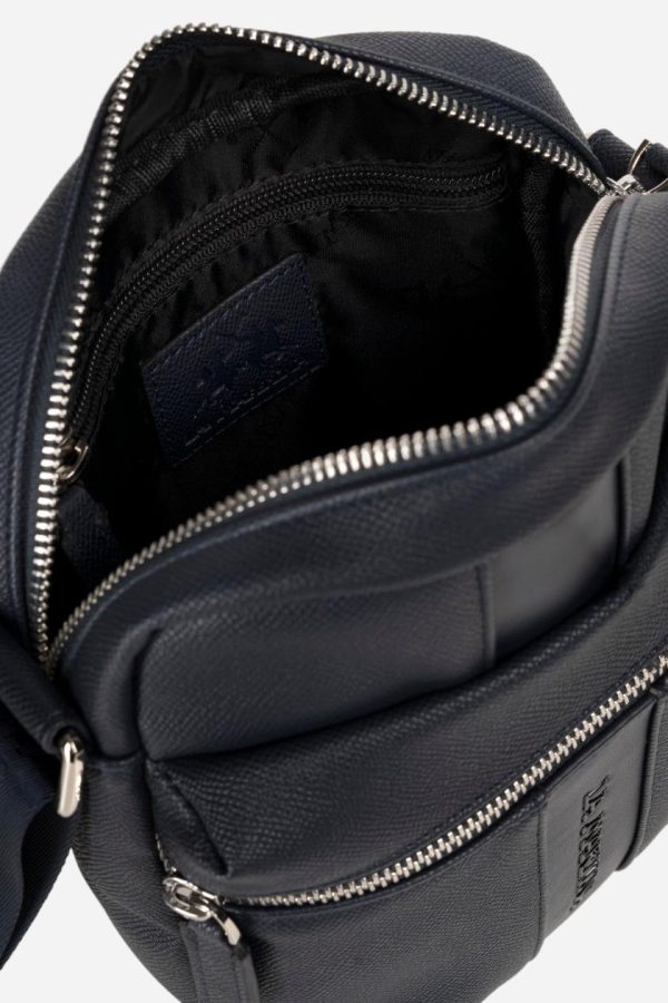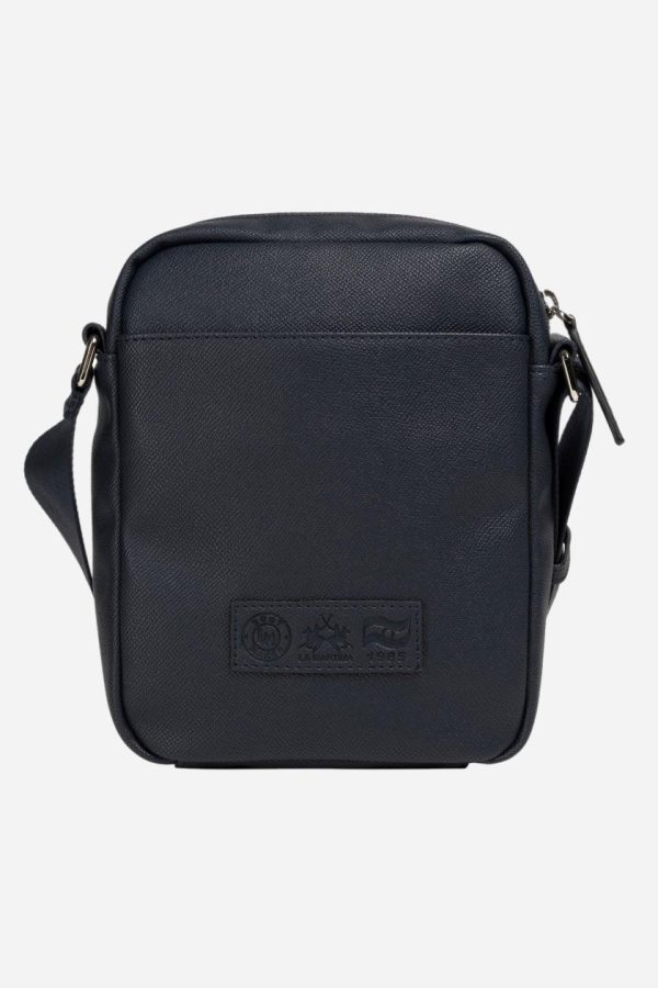 Single-colour men’s crossbody bag, made of polyurethane. With zip fastening. There is an additional external pocket, also with a zip fastener. Adjustable fabric shoulder strap with La Martina lettering. Inside there are two pockets: one zipped and one open. The lettering “La Martina” is positioned on the front in TPU. Dimensions (length x height x width) 17 x 22 x 9 cm.