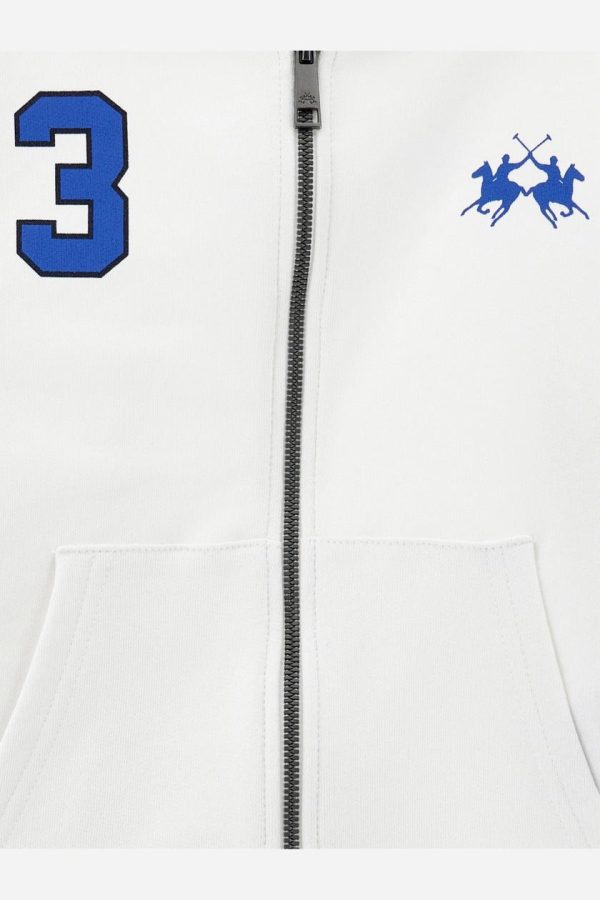 This children’s single-coloured sweatshirt is crafted from premium cotton for all-day comfort. Featuring a convenient hood and smooth full-zip fastening for easy wear. This hoodie offers practical versatility with double front pockets for storage. Durable rubberised prints are present on both the front and back for lasting style. The signature logo is applied on the chest, left side.