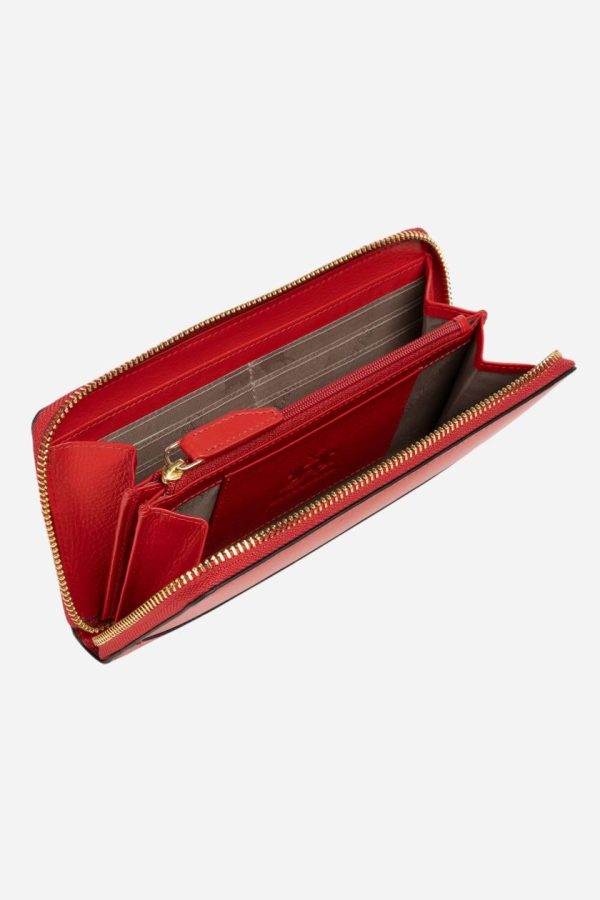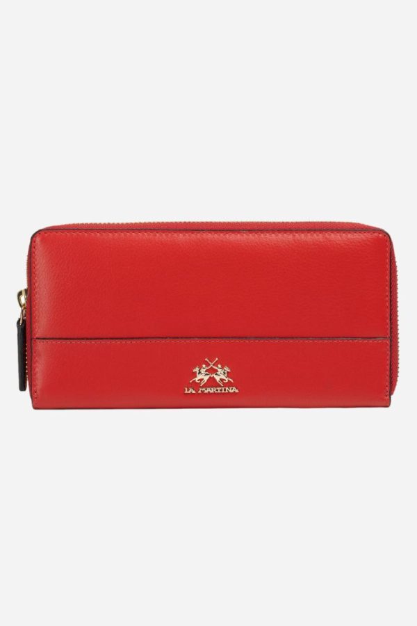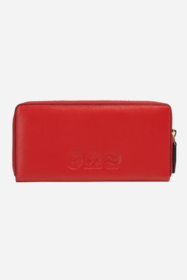Experience luxury with this women’s single-color wallet crafted from genuine leather. Features a secure zip fastening for ultimate protection. The thoughtfully designed interior includes 16 card compartments, two generous open compartments perfect for banknotes and one secure zipped compartment ideal for coins. The sophisticated institutional logo is elegantly represented by a polished metal plate on the front. Dimensions (length x height x width) 20 x 10 x 2 cm.