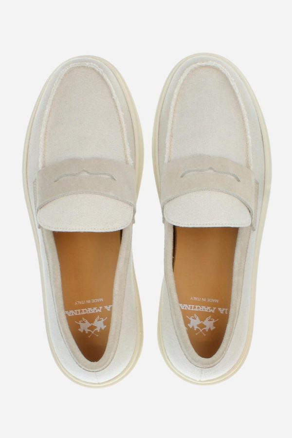 La Martina Formal Shoes | Slip-on Loafers In Linen Canvas And Suede Beige/beige – Men