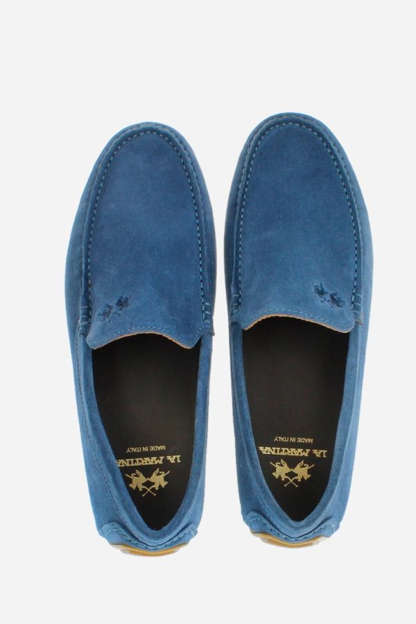 An elegant and timeless men’s loafer, made of soft suede, perfect for both formal and informal outfits. The flexible sole with rubber tread ensures comfort and durability. The logo is embroidered tone-on-tone on the vamp, while the hand stitching along the entire vamp highlights the craftsmanship of the product. The custom footbed ensures a comfortable, tailored fit.