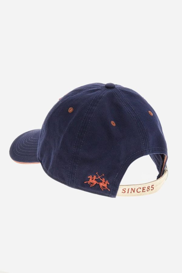 Unisex single-colour baseball cap in 100% cotton. With contrasting details. The brand’s initials are embroidered on the front. A small logo is embroidered on the back. Adjustable fastening.
