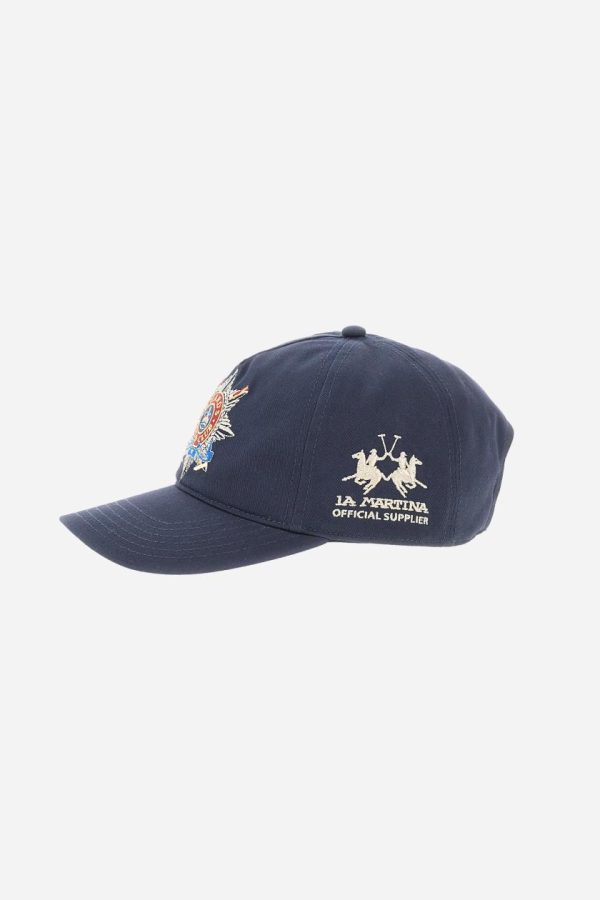 Unisex Guards baseball cap in plain 100% cotton. The symbol of the line is embroidered on the front. Large logo embroidered on the side. Adjustable fastening.