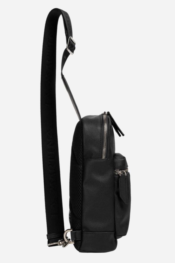 Elevate your everyday style with this sleek men’s crossbody bag crafted from premium polyurethane. Features secure zip fastening and includes a convenient additional external pocket with zip closure. The adjustable fabric shoulder strap showcases the distinctive La Martina branding, while the front displays the iconic TPU logo. Thoughtfully designed interior includes both zipped and open pockets for optimal organization. Dimensions (length x height x width) 16 x 27 x 9 cm.