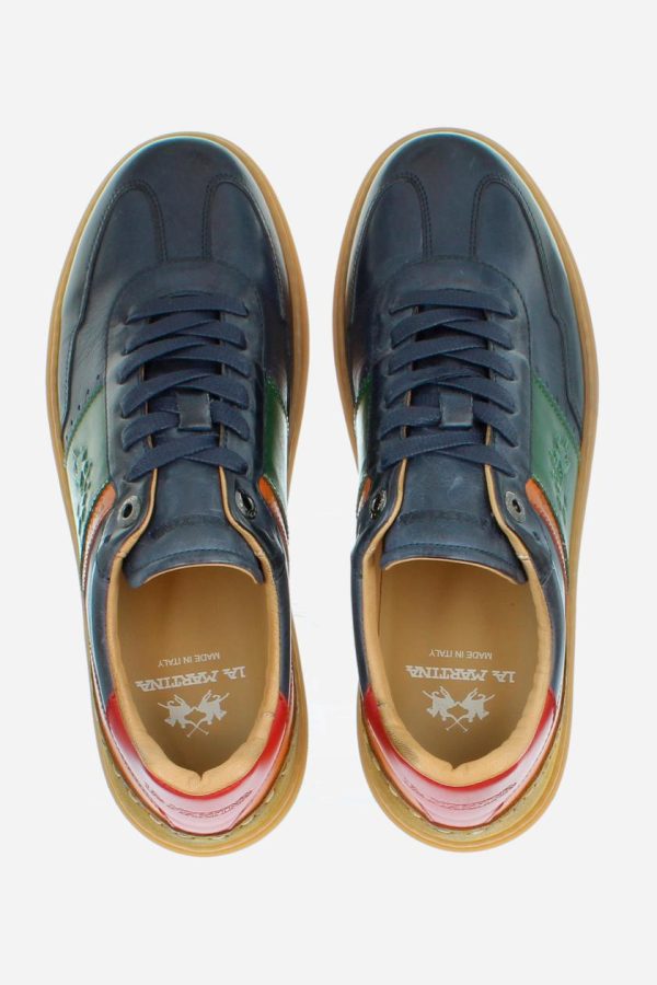These premium sneakers showcase exceptional craftsmanship with fine vegetable leather that’s hand-brushed and artfully aged. Representing the essence of La Martina’s heritage, these trainers blend traditional leatherworking techniques with modern comfort features, including a durable honey-colored natural rubber sole. The distinctive La Martina branding appears embossed on multiple surfaces, while the high-frequency logo adds sophisticated detailing to the side band. Custom-designed eyelets, a precision-crafted footbed and hand-threaded heel tabs demonstrate the exceptional attention to detail and quality construction.