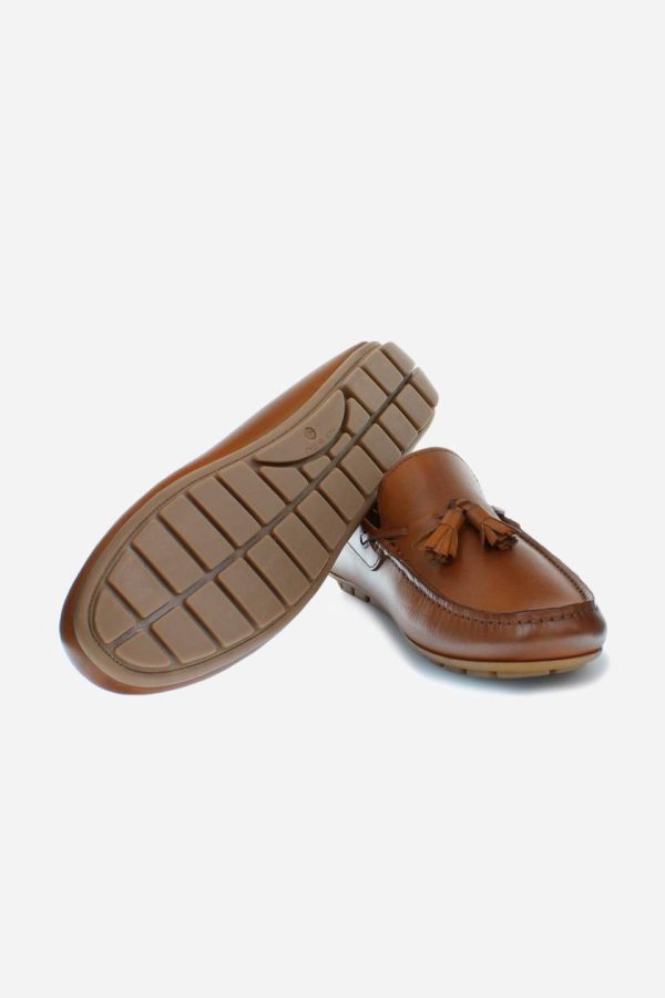 Elevate your style with these premium leather loafers featuring a boat shoe-inspired cord design that blends elegance with casual sophistication. The durable rubber sole provides superior traction and long-lasting performance. The distinctive tonal cord with tassels, meticulously knotted on the vamp and threaded through metal eyelets, adds a touch of refined detailing. The embossed logo on the back showcases the brand’s heritage. Expert hand stitching on the vamp and custom footbed demonstrates superior craftsmanship, delivering exceptional comfort and a perfectly refined fit.
