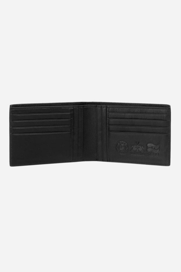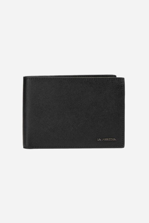 This sophisticated men’s wallet is crafted from premium black cowhide leather, featuring a smooth texture with timeless, clean lines. The front showcases an elegant metal plate with the distinctive La Martina branding. Inside, you’ll find twelve organized card slots plus a dedicated bill compartment for optimal functionality. Dimensions: cm (width x depth x height) 13 x 9.50 x 1.50.
