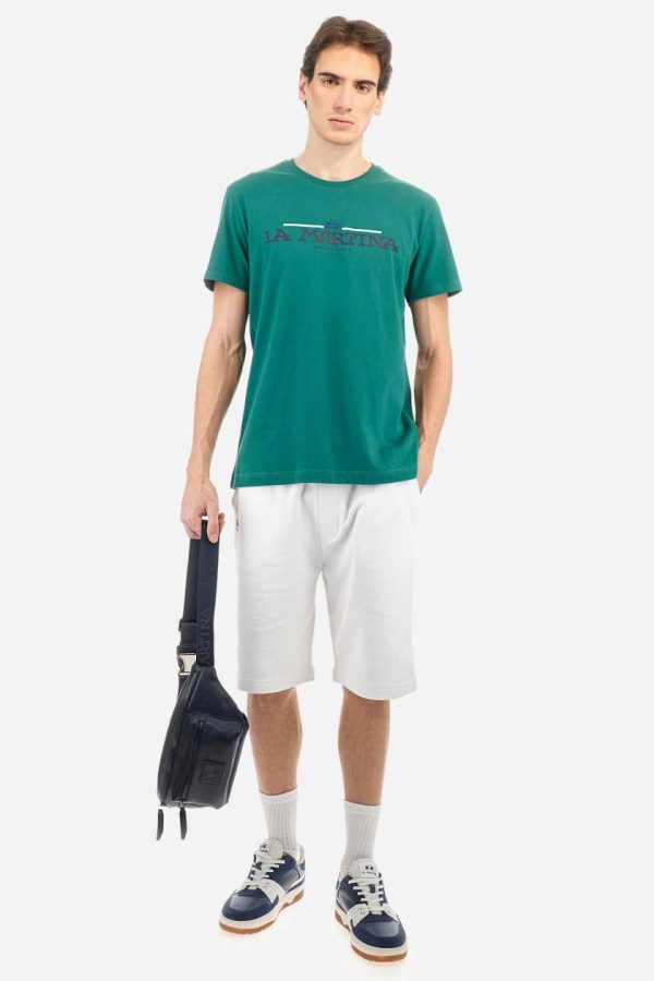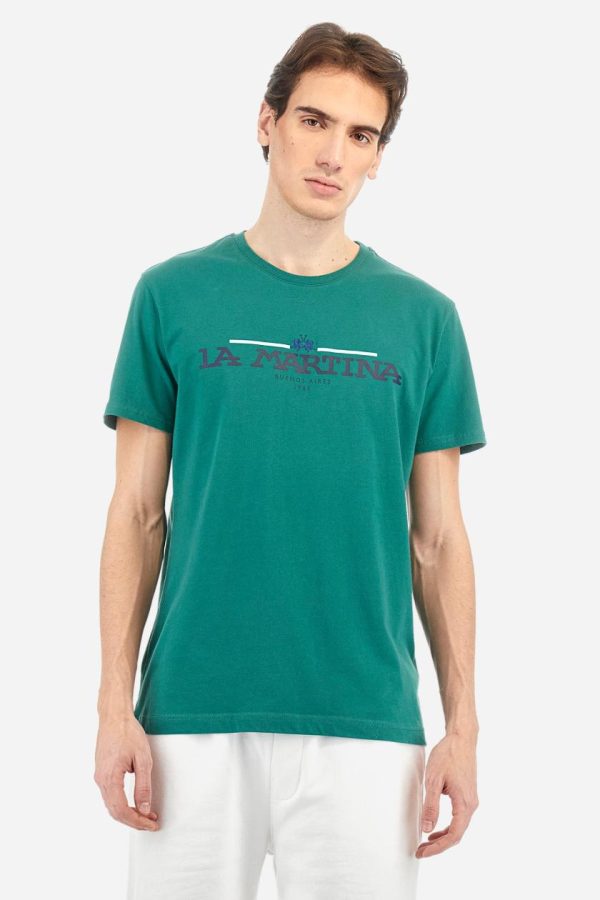 Elevate your casual wardrobe with this men’s solid color T-shirt, crafted from premium cotton jersey. Features a classic crew neck design with distinctive La Martina text print. The authentic logo is expertly embroidered on the front, positioned at the center of the chest for a polished look. Designed with a regular fit that provides optimal comfort and ease of movement. The model is wearing size L.