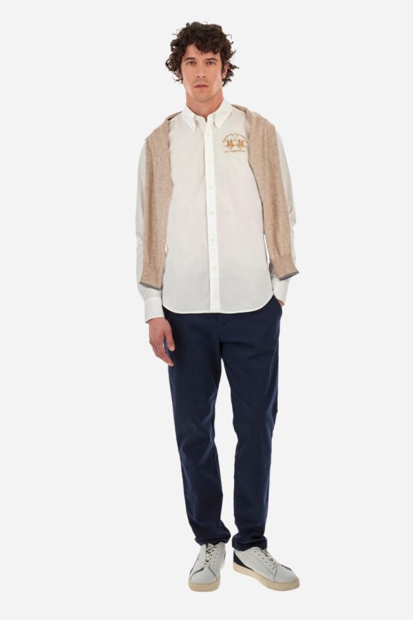 Men’s long-sleeved, regular-fit button-down collar shirt featuring a classic cut that never goes out of style. Showcases a contrasting La Martina logo embroidered on the chest for sophisticated branding. Perfect for pairing with your favorite jeans from the collection or dressing up with elegant trousers for a polished look.