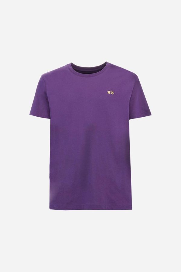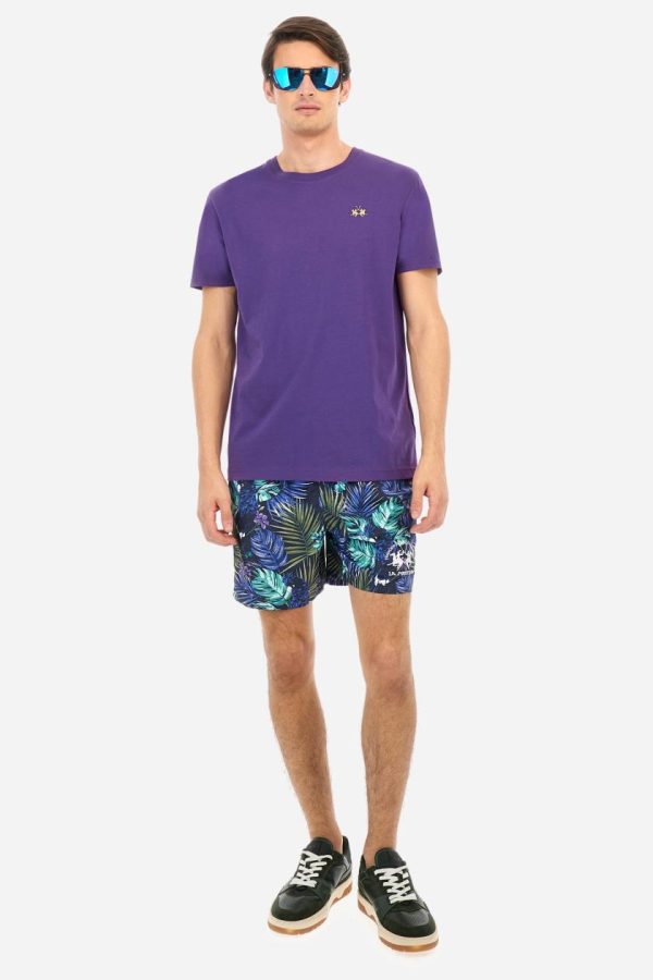 Elevate your casual wardrobe with this premium men’s short-sleeved crew-neck T-shirt featuring a solid color design and distinctive embroidered logo detail. Made of 100% cotton with a regular fit that provides exceptional comfort and effortless style. Perfect for pairing with Bermuda shorts or trousers to create a polished yet relaxed look ideal for everyday wear and leisure activities. The model is 187 cm tall and wears a size L.