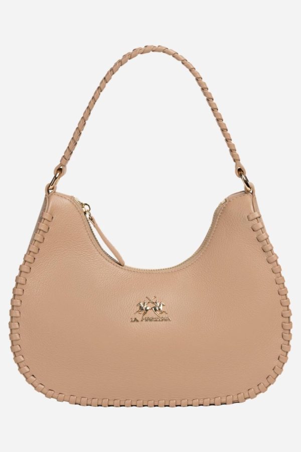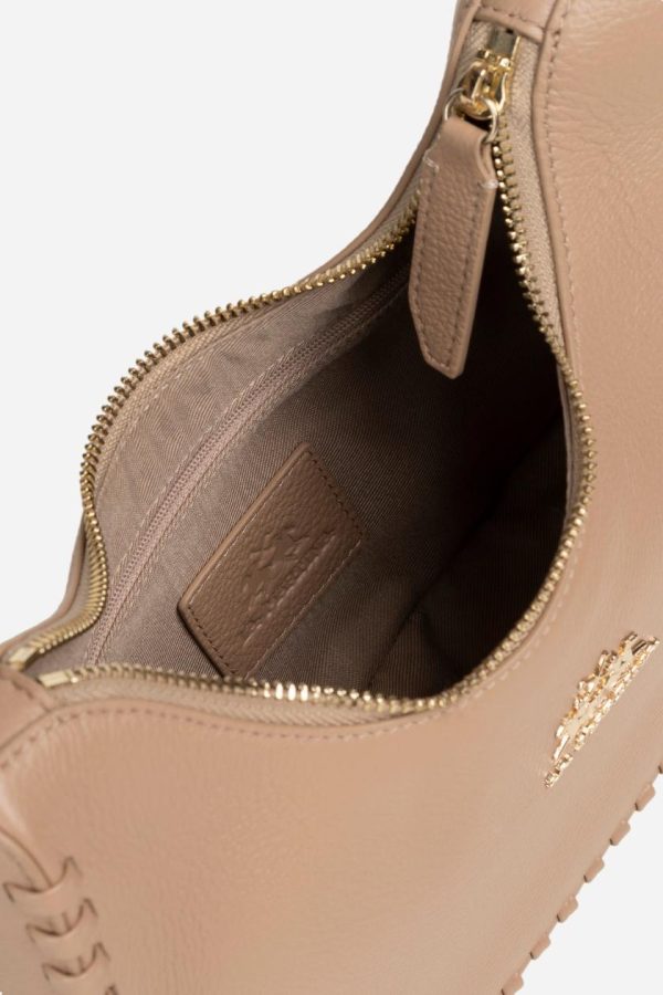 Discover this exquisite single-color women’s shoulder bag crafted from genuine 100% leather. Features secure zip fastening and sophisticated raised stitching along the entire trim for enhanced durability. The interior boasts a practical polyester lining with two convenient pockets: one open pocket and one secure zip pocket. Showcases the distinctive metal plate logo prominently displayed at the center front. Dimensions (length x height x width) 28 x 21 x 8 cm.