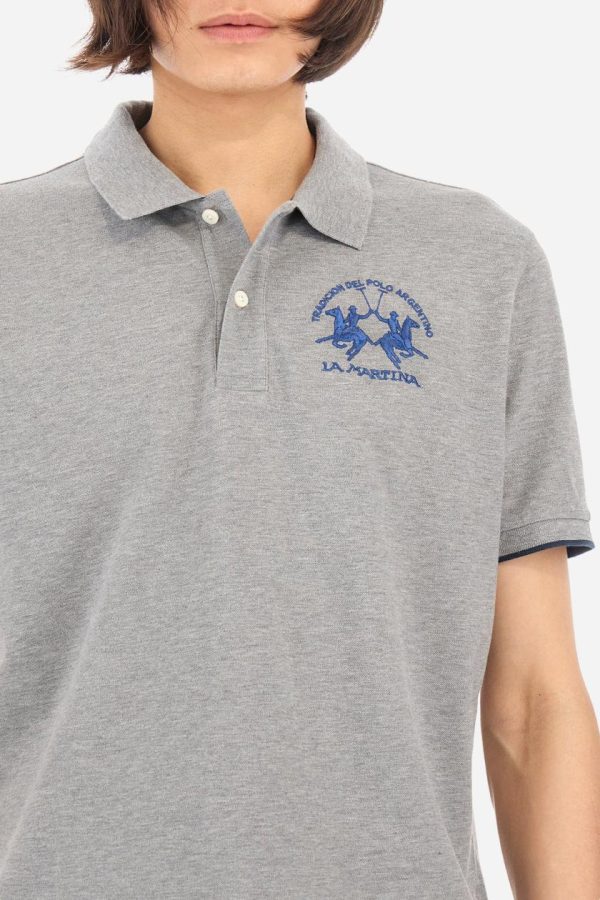 Men’s short-sleeved, regular-fit polo shirt. A classic model with a contrasting La Martina logo-embellished chest and profiled sleeve trims. Perfect when worn with a pair of jeans from the collection.