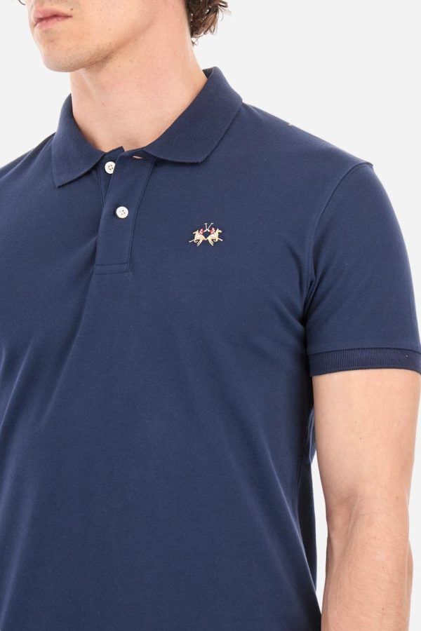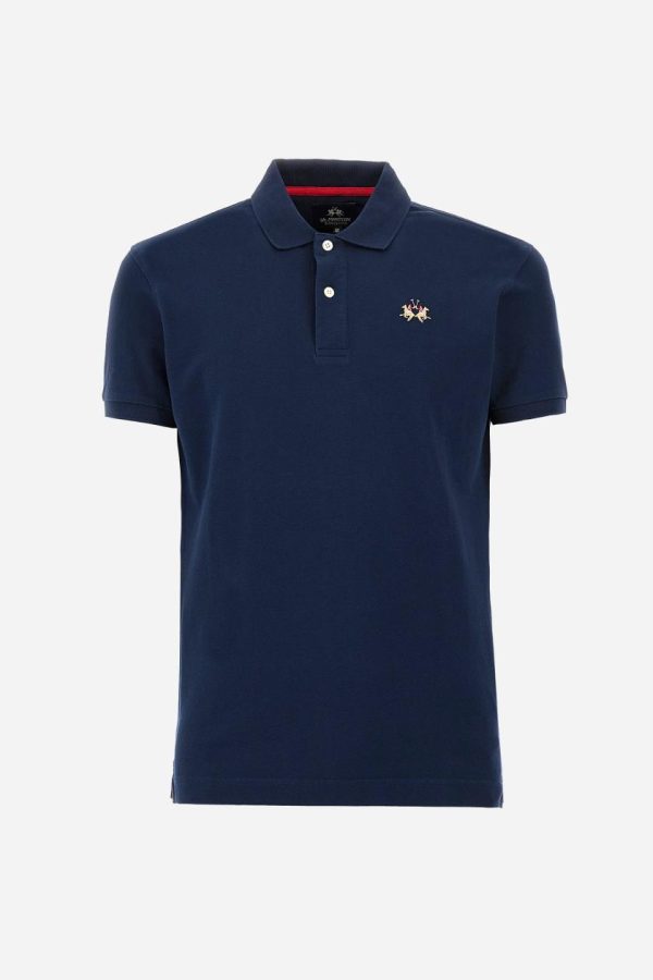 Men’s short-sleeved, slim-fit polo shirt. A classic model with a contrasting embroidered La Martina logo-embellished chest. Perfect when worn with a pair of jeans from the collection.