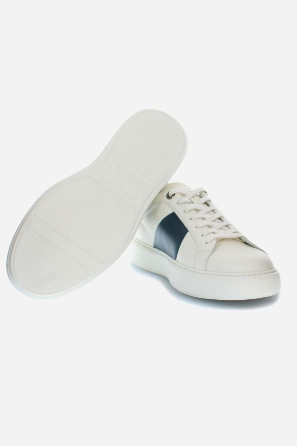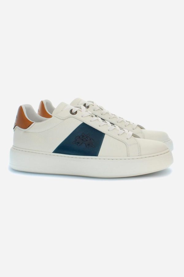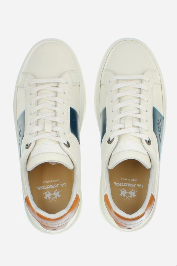 La Martina Sneakers | Trainers In Natural Leather Off White/blu – Men