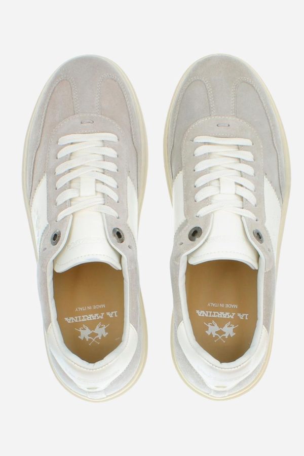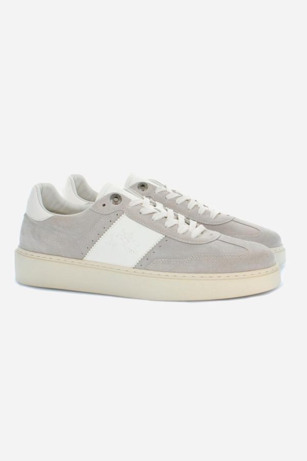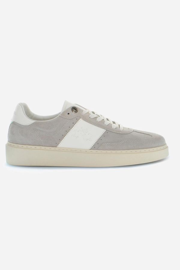 This suede variant features a contrasting leather side band, toe cap and tongue, paired with a natural rubber sole. The high-frequency logo decorates the side band with a zigzag cut. The La Martina lettering is branded onto the patch and the tongue. A fresh and breathable version, ideal for the summer, combining comfort and style.
