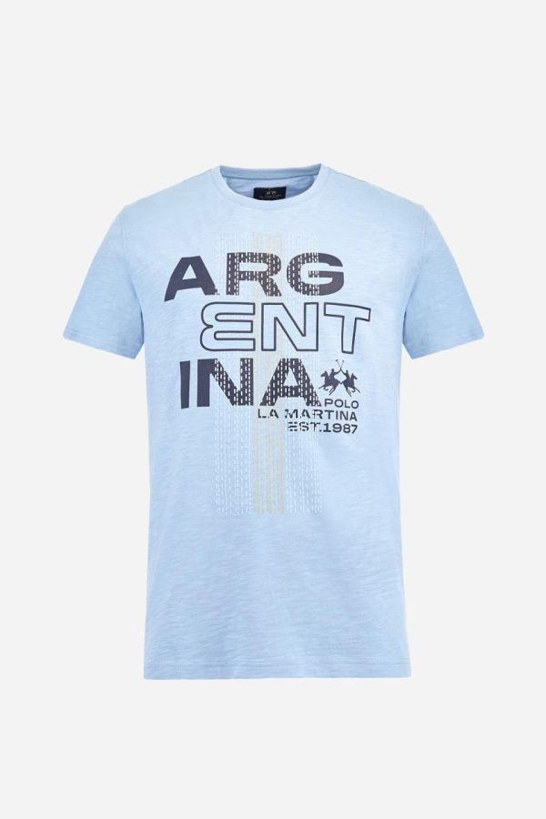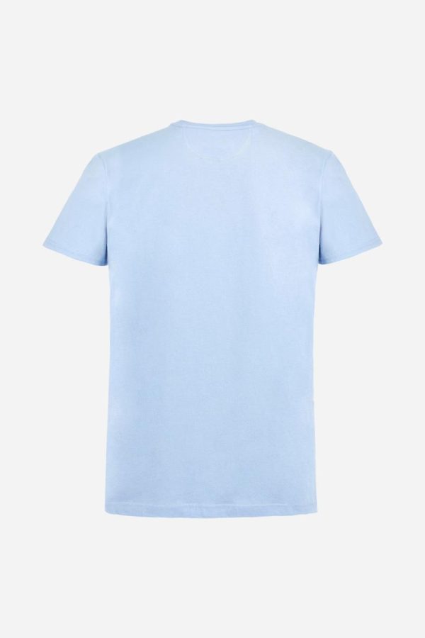 Men’s T-shirt with plain sleeves, made of slub jersey. Ribbed crew neck. The graphic on the chest is a multicoloured rubberised print. The dotted effect is also a slightly raised embroidery effect print. The logo is printed on the front. Regular fit. The model is wearing a size L.