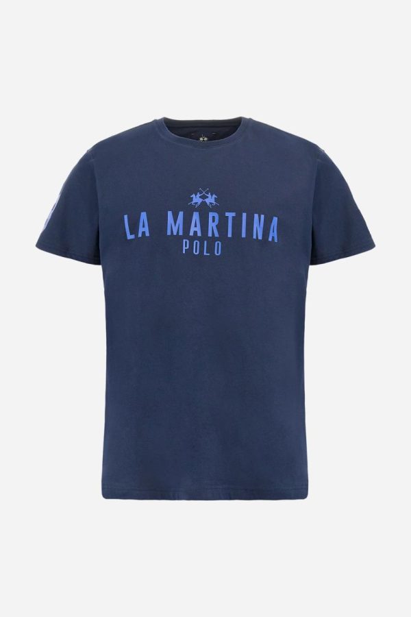 Men’s single-colour crew-neck T-shirt with short sleeves, made of 100% cotton. The front features a printed logo and the lettering La Martina Polo. The number 3 is printed on one of the sleeves. Regular fit. The model is wearing a size L.