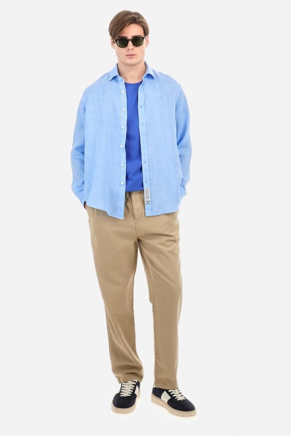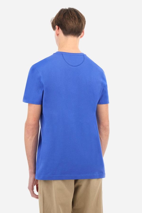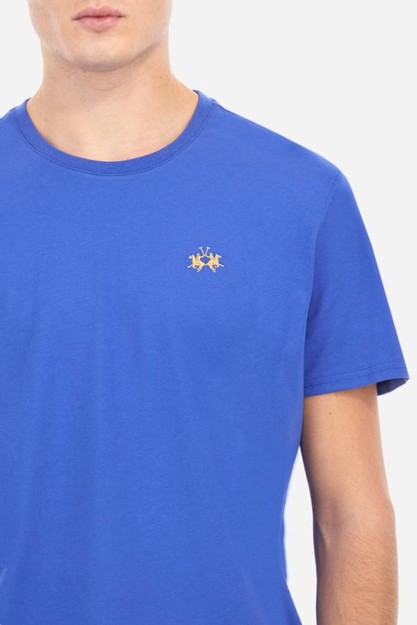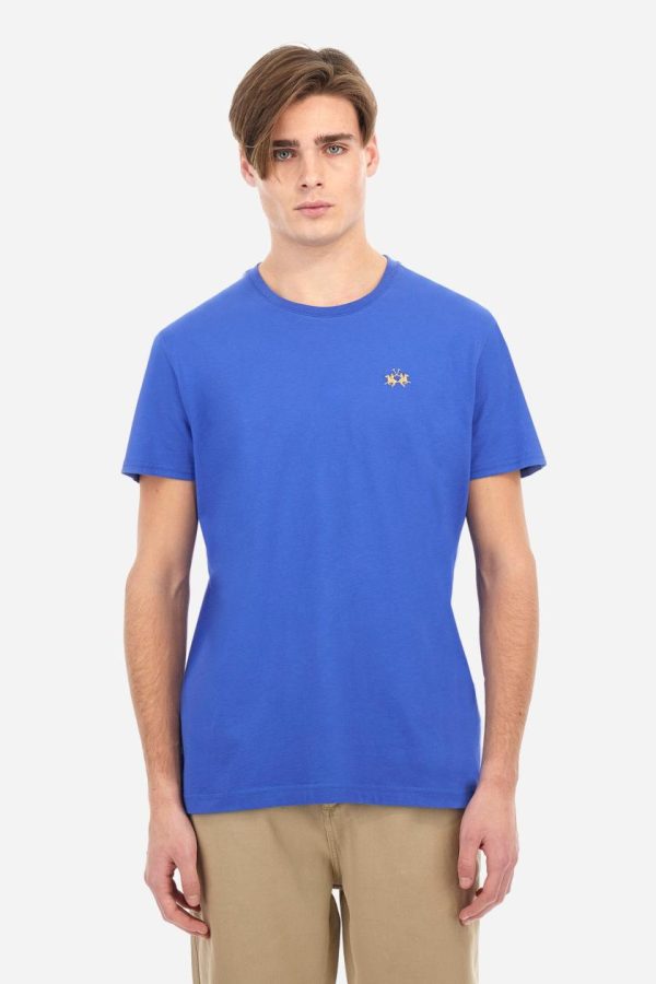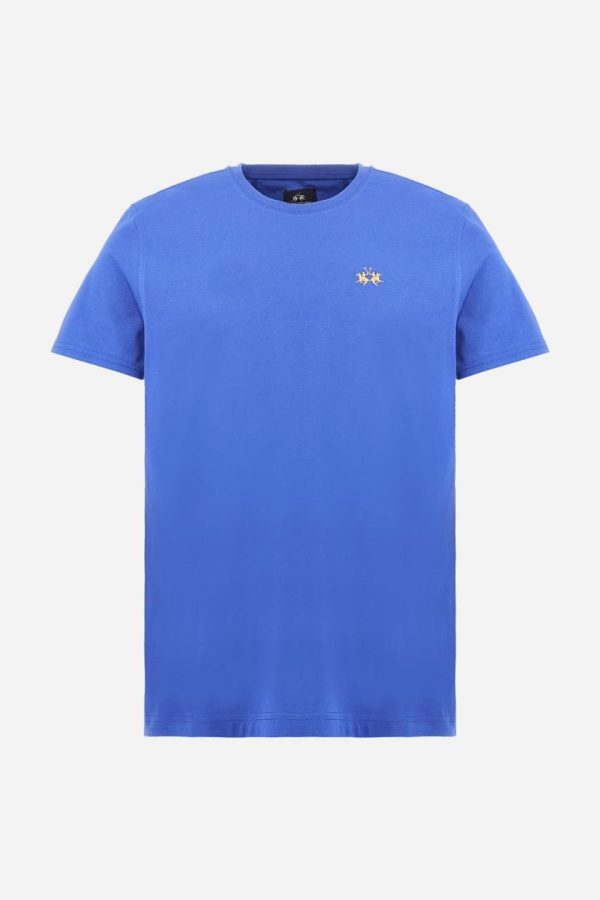 Men’s short-sleeved crew-neck T-shirt in solid colour with embroidered logo in contrasting colour on the chest. Made of 100% cotton with a regular fit. It is perfect paired with Bermuda shorts or trousers for a casual and trendy look. Suitable for leisure time. The model is 187 cm tall and wears a size L.