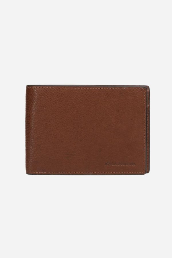 Men’s wallet in single-colour calfskin. The La Martina lettering is printed on the front. Inside there are nine compartments for cards, a compartment for banknotes, and a coin purse. Wallet dimensions: cm (width x depth x height) 13 x 9.50 x 1.50.